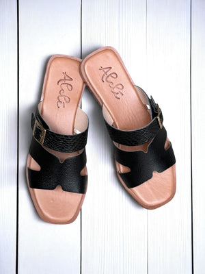 Sandalias Planas, capellada 100% Cuero, plantilla confort y suela en PVC